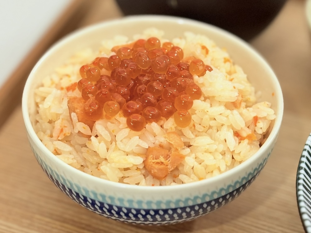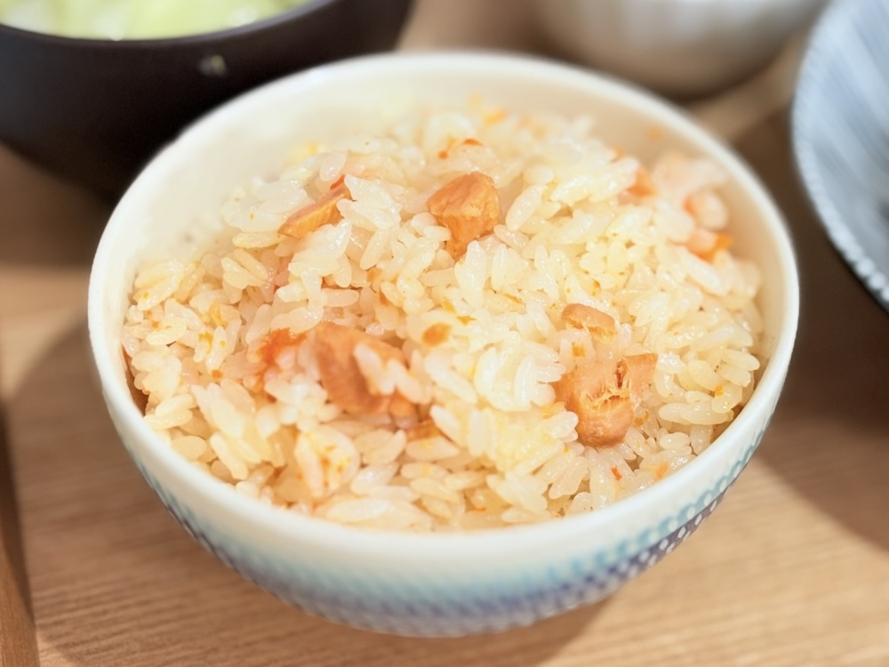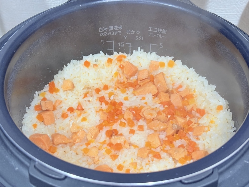 鮭はいくつか崩してご飯に混ぜつつ、上の方には大きめの鮭を残してトッピングしました。