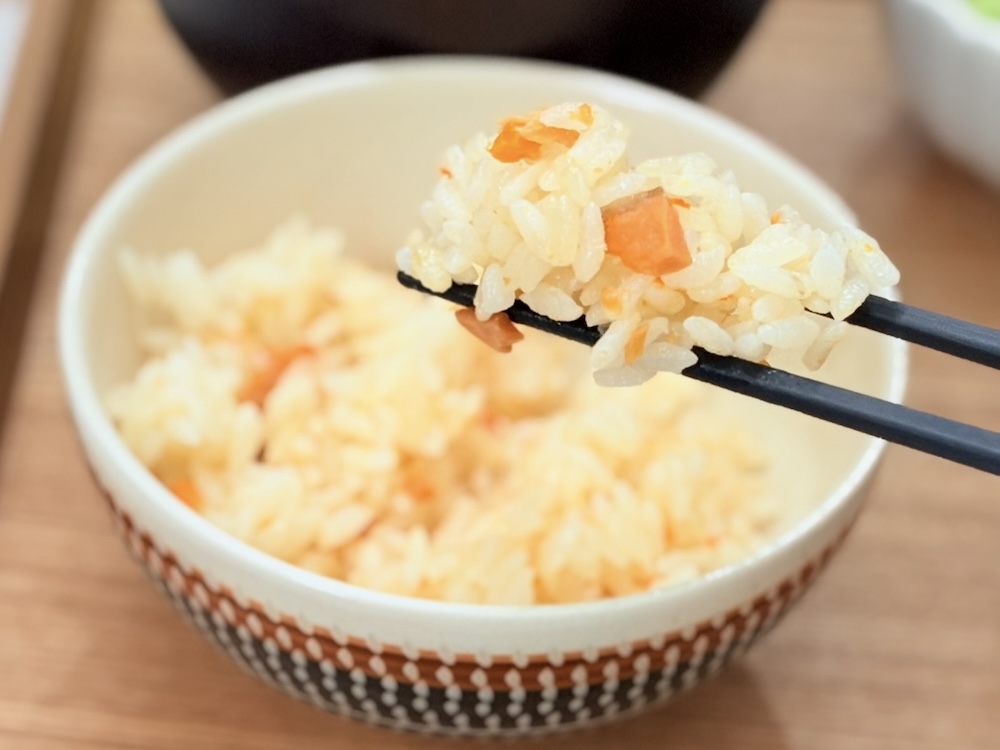 炊き込みごはんは茶色っぽくなってしまうことが多いですが、こちらはご飯も淡いオレンジ色で明るい見た目。
