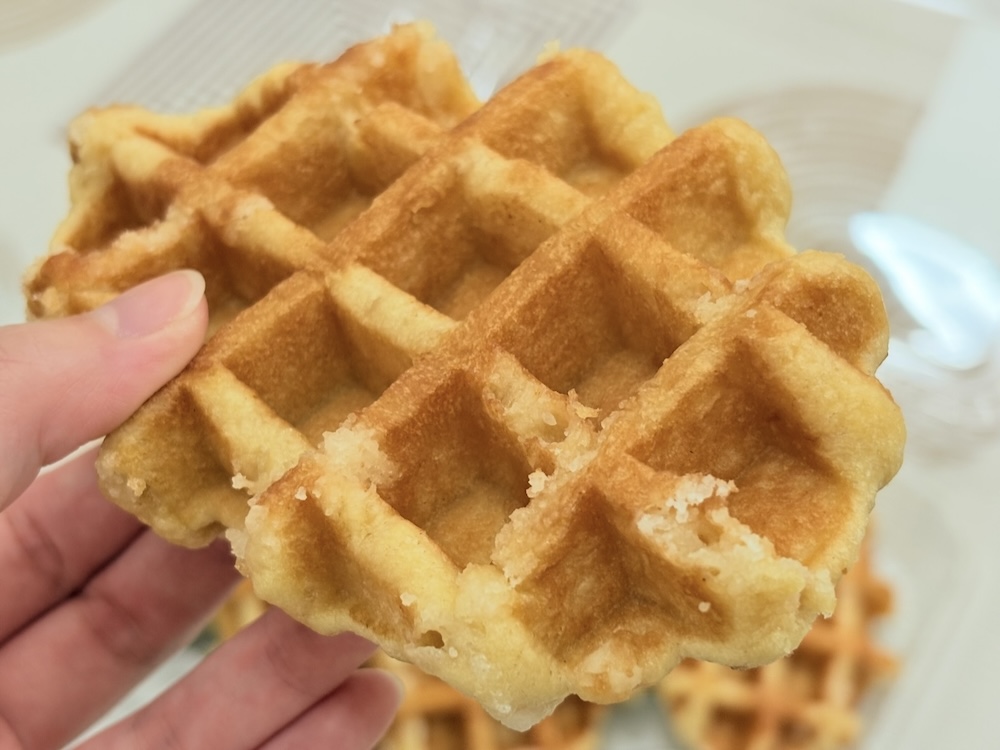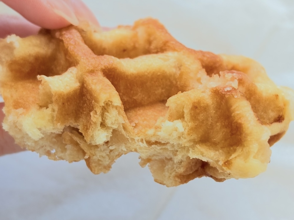 私は今までアメリカンワッフルのような軽い食感のものしか食べたことがなかったのですが、こちらは生地がしっとりむっちりしていて食べ応えがあります。