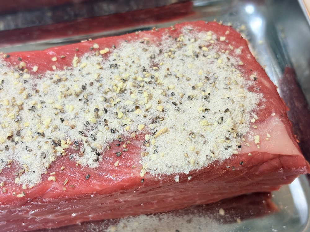 - 下味まぶし粉とソースが入ったローストビーフの素