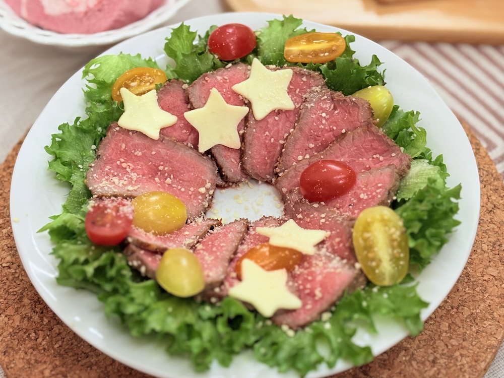 今回はクリスマスパーティーのメインということで、可愛くリースっぽい盛り付けにしてみました!