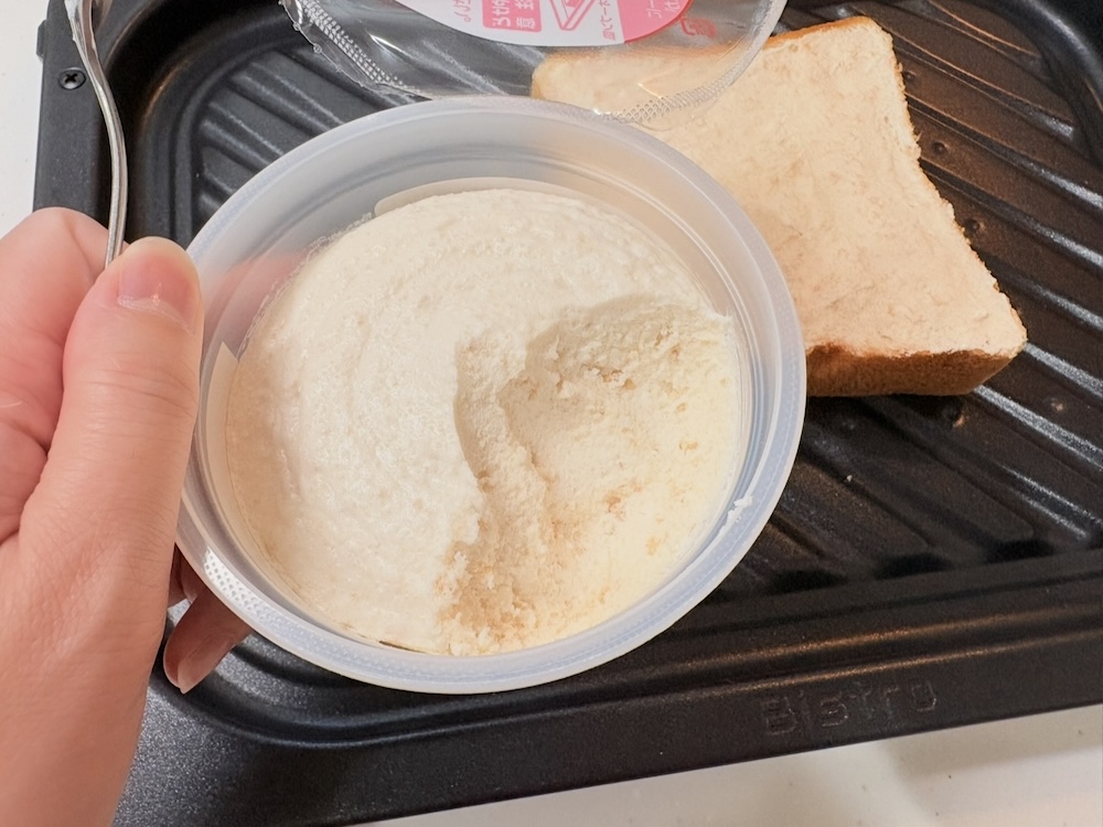 今回は4枚切り食パンだったので気持ち厚めに塗り広げましたが、6枚切りだったらもう少し薄めに規定の分量(12g)で塗って美味しくいただけると思います。