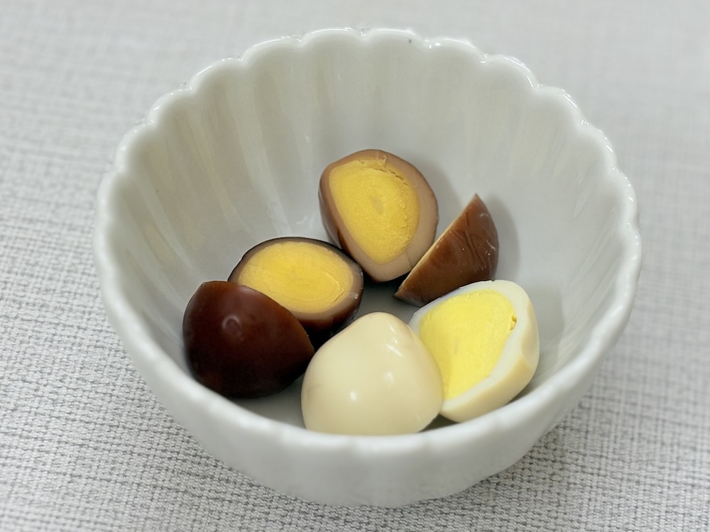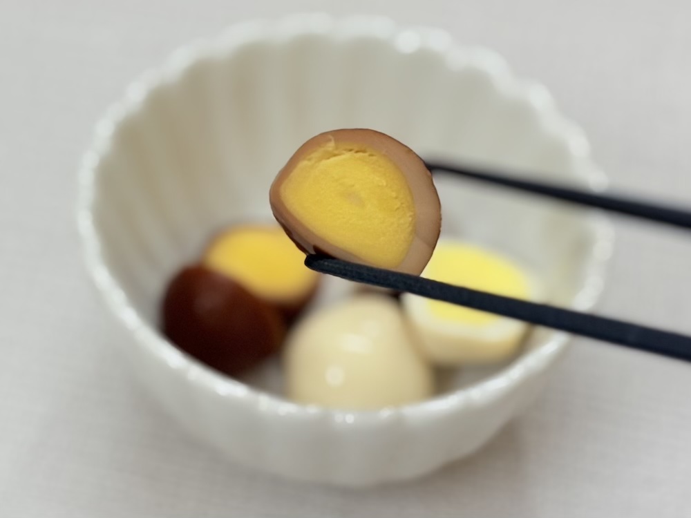 見た目でもわかるとおり中まで味が染みていて、どれも美味しいですが醤油味が一番万人受けしそうだなと思いました◎