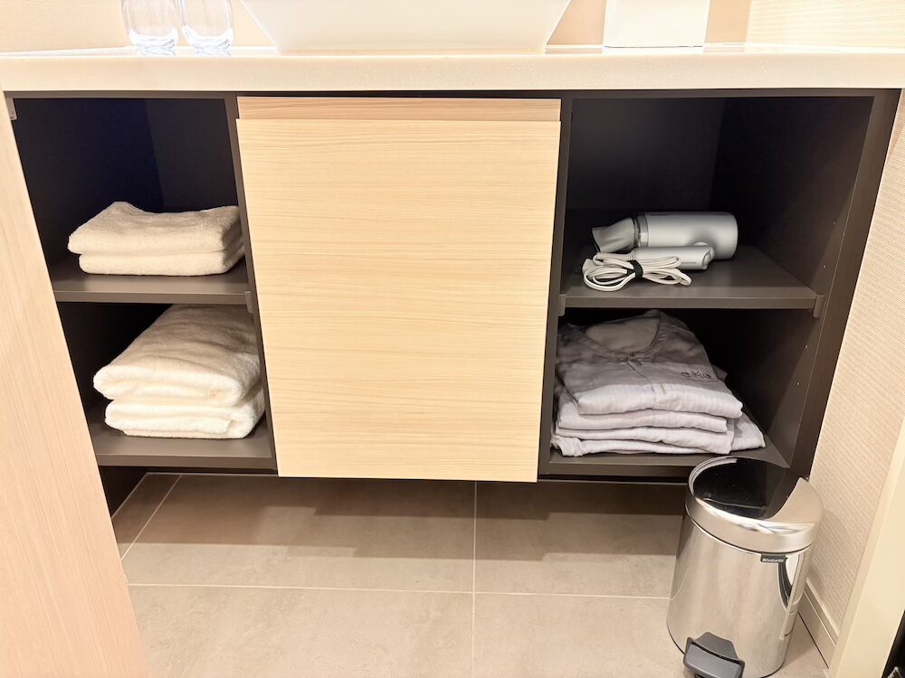 下にはタオルや滞在着、ドライヤーが置いてありました。