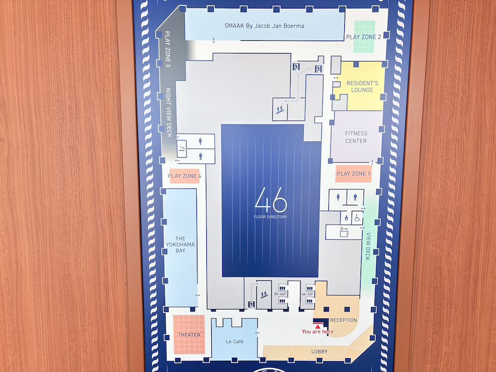 - ジム、プレイゾーン、シアターラウンジなど24時間楽しめる場所が豊富