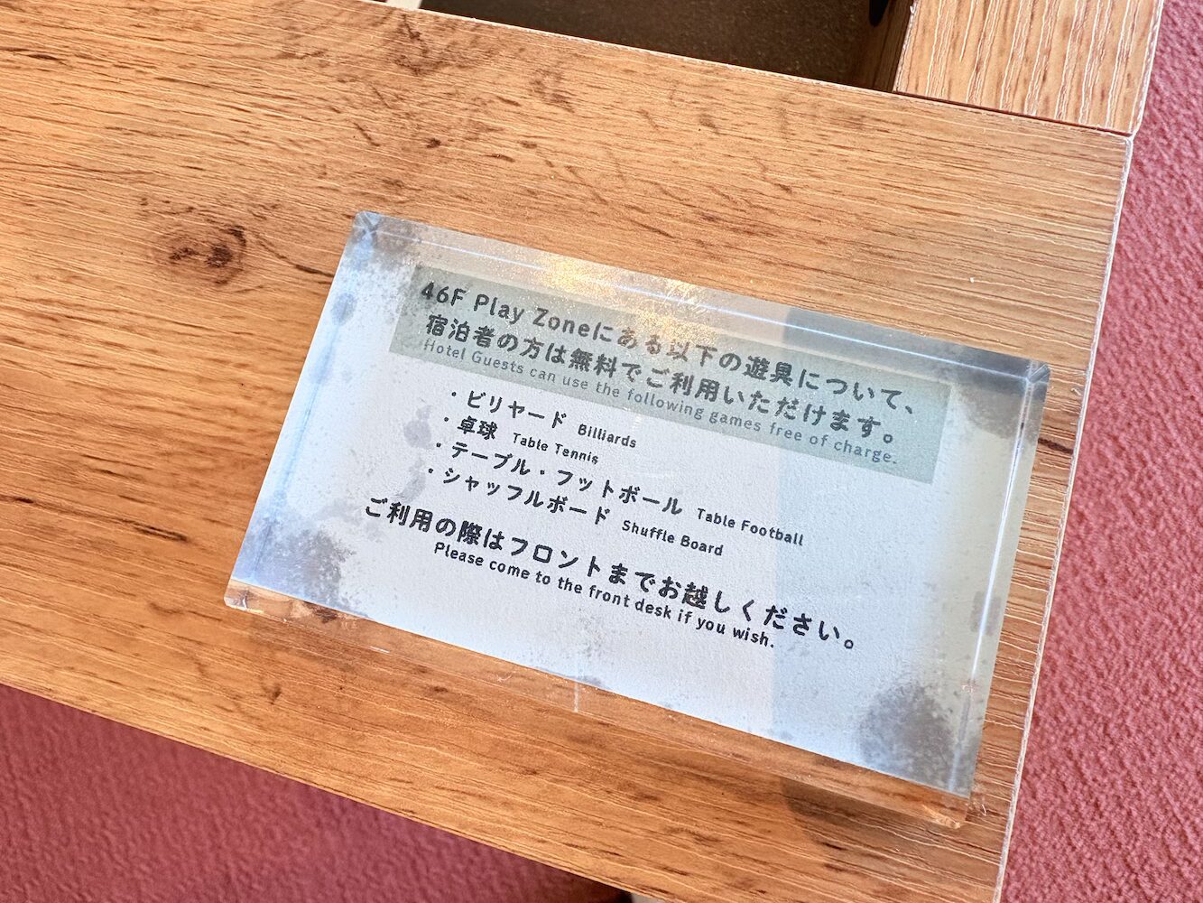 どうやらプレイゾーンは宿泊者が無料で遊ぶことのできる遊具が置かれたエリアとのことで、利用する際はフロントで受付をするようです。