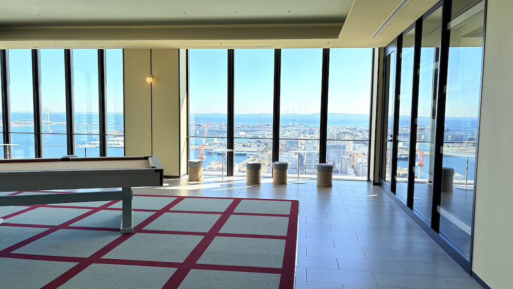 『OMO5横浜馬車道』のOMOベースは地上154mの46階に位置しており、360度横浜の絶景を見渡せる回廊式のパブリックスペースとなっています。