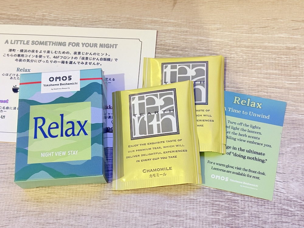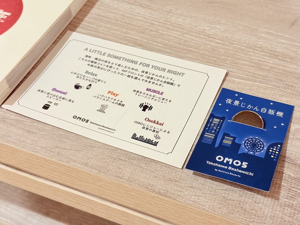 チェックインの際にこちらの紙と専用コインをもらうことができ、今夜の気分にあった箱を選ぶとそのテーマに沿った何かしらが出てくるという仕組み。