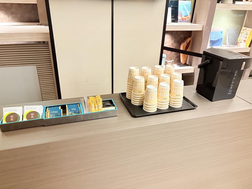 コーヒーや紅茶などのドリンクも用意されており、セルフサービスで自由に楽しむことができます。