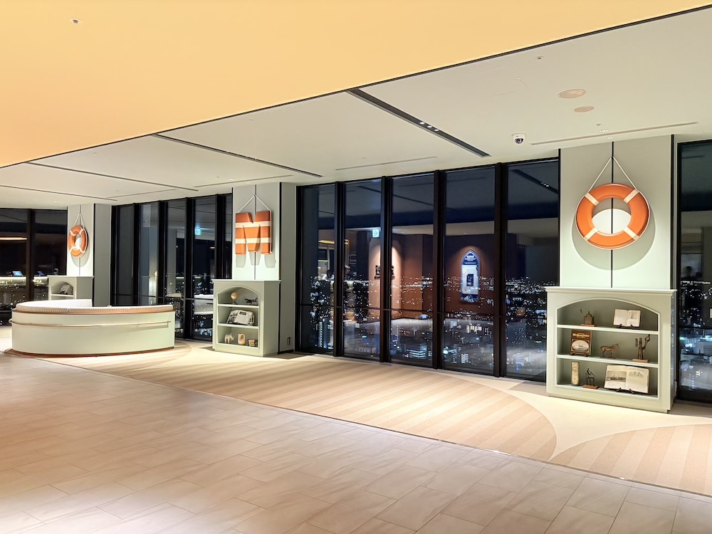 ロビーラウンジ「OMOベース」には展望スペースだけでなくレストランやジムなどもあり、全ての場所から横浜の絶景を眺めることができる贅沢な空間です。
