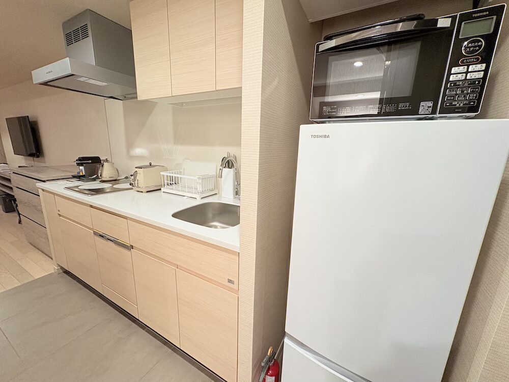 星野リゾート初のアパートメント型ホテルで客室にキッチンや洗濯機が備わっているので、非日常的でありながら暮らすような旅ができるというのも魅力のひとつ。